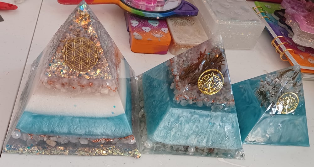 After ordering, send me an email to [email protected] or message me on tiktok with your order number and details on how you would like your pyramid made. Clear quartz and copper chips are added to all crystal pyramids unless a note is attached. (NOTE: Chakra pyramid only comes in large size and are dye colored. 7 Chakra crystal pyramids are made with 7 different grade A crystal gemstone chips and 100%pure copper bites(super orgonite).